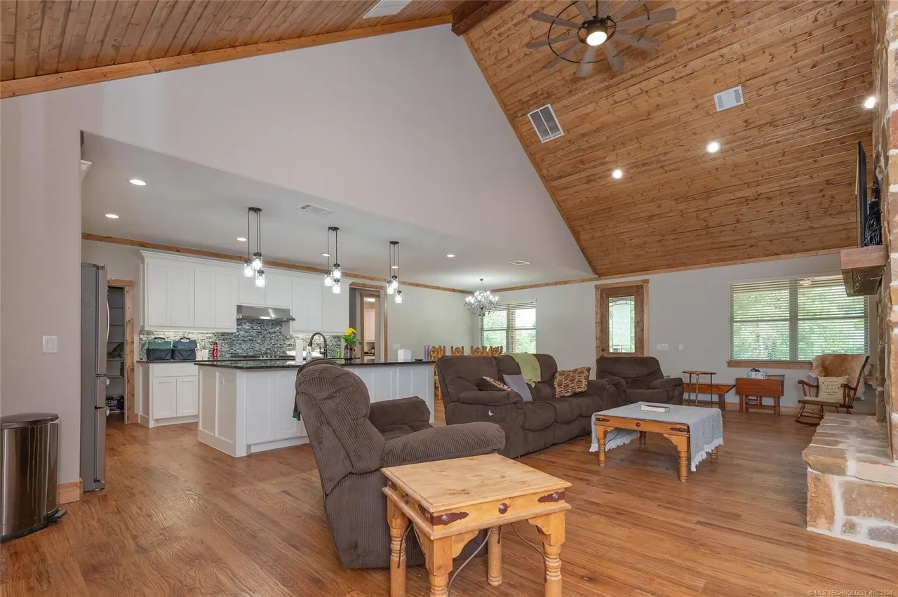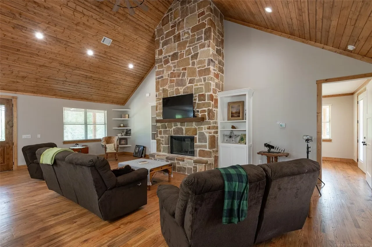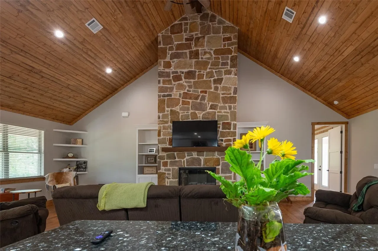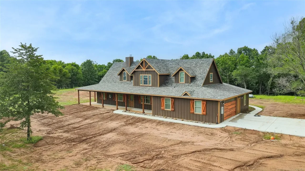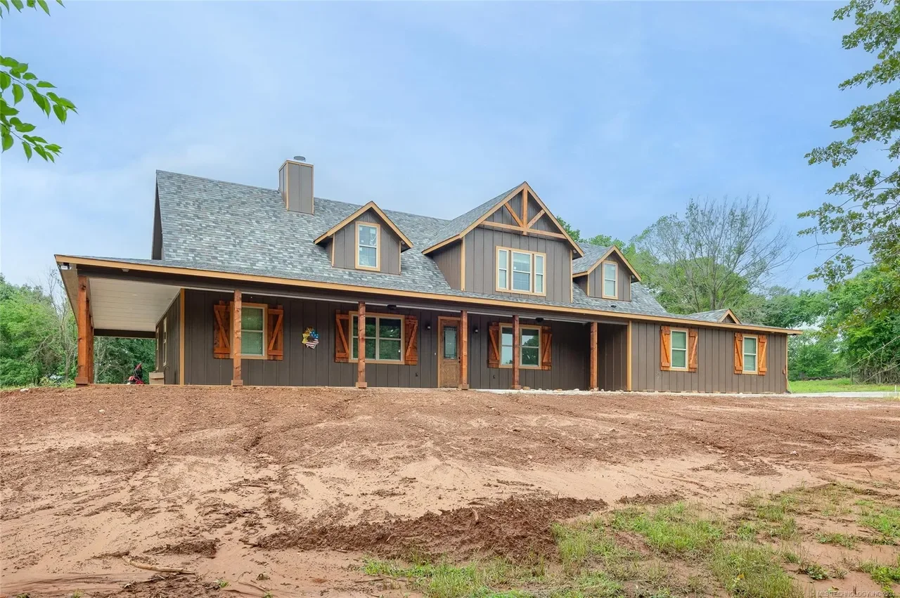 Built in 2023, this custom home has 3 bedrooms and 3.5 baths. Notable details of this home include vaulted wood ceiling in the living area, stone fireplace, large central kitchen island, and large master bathroom. This home is detailed with country and western charm.
