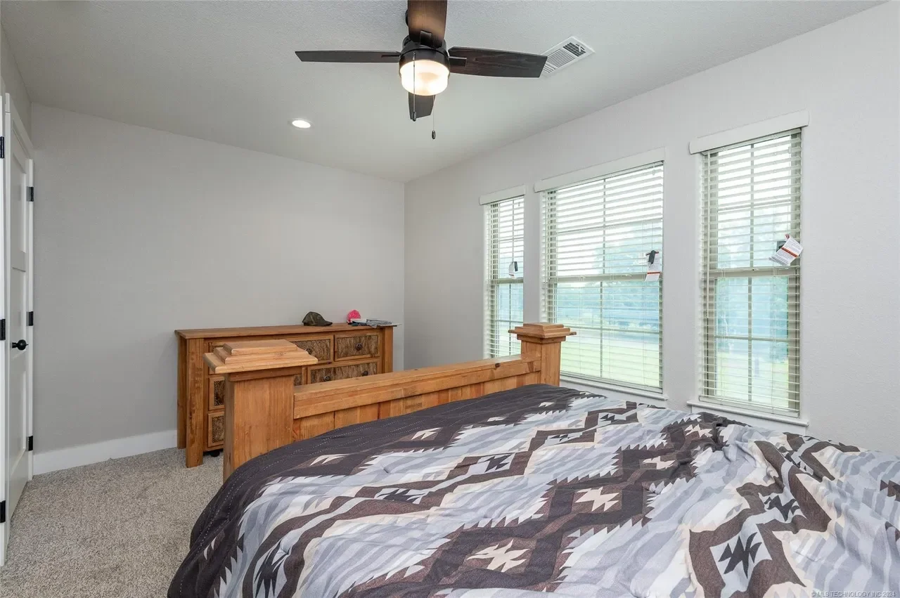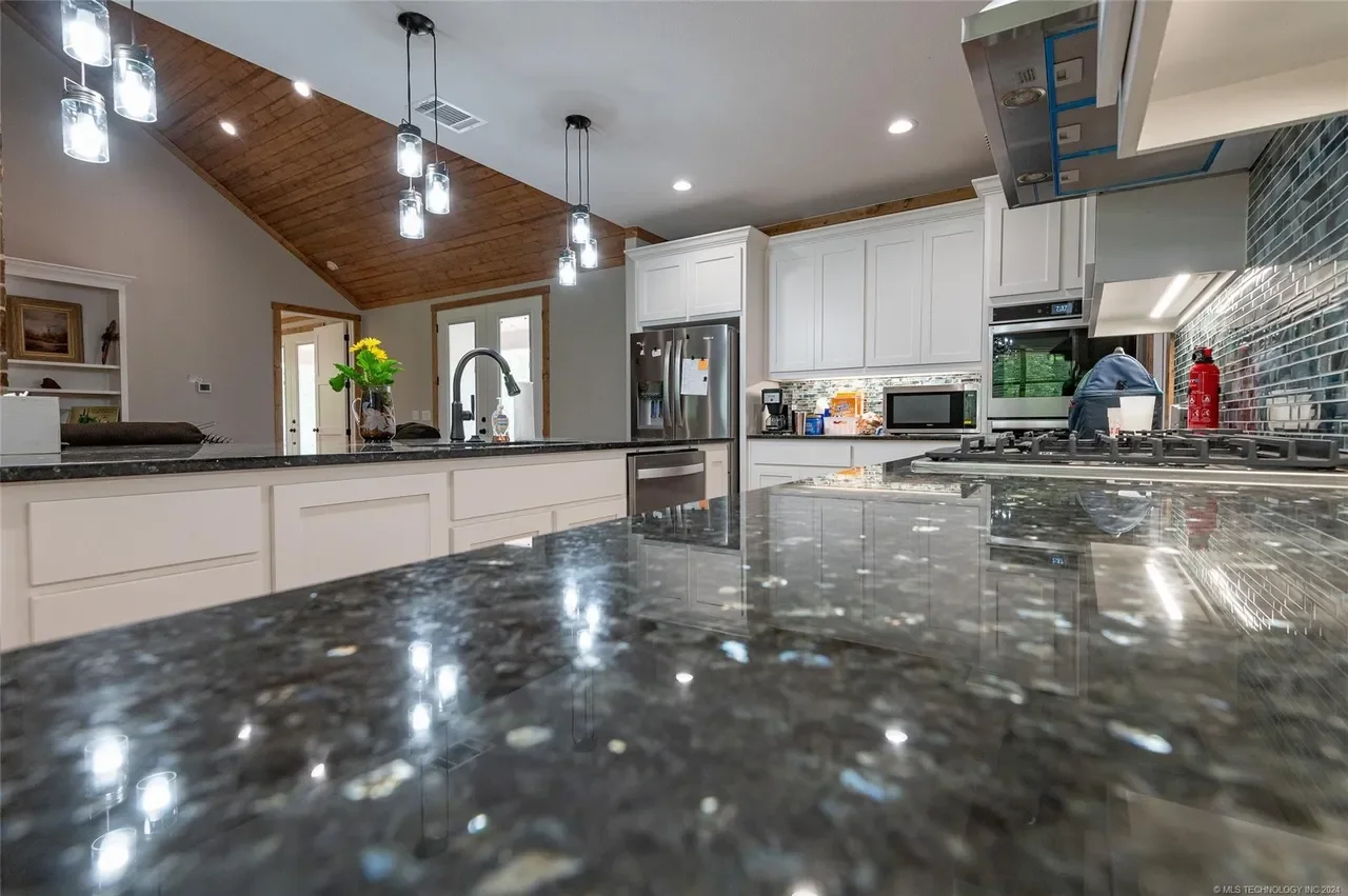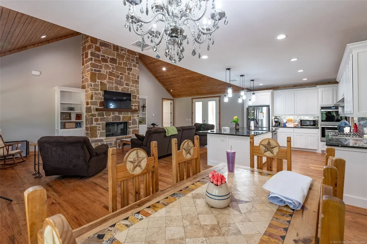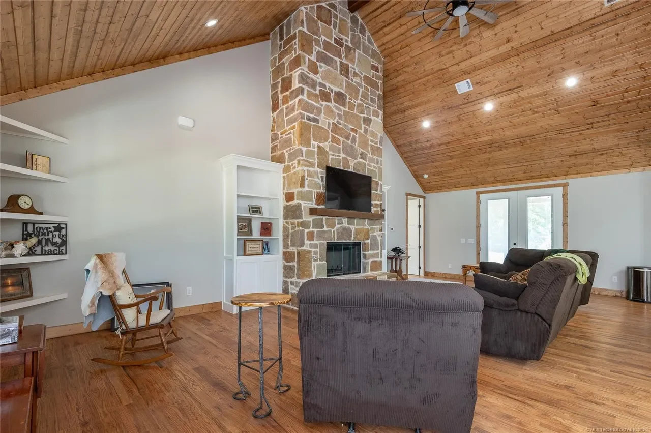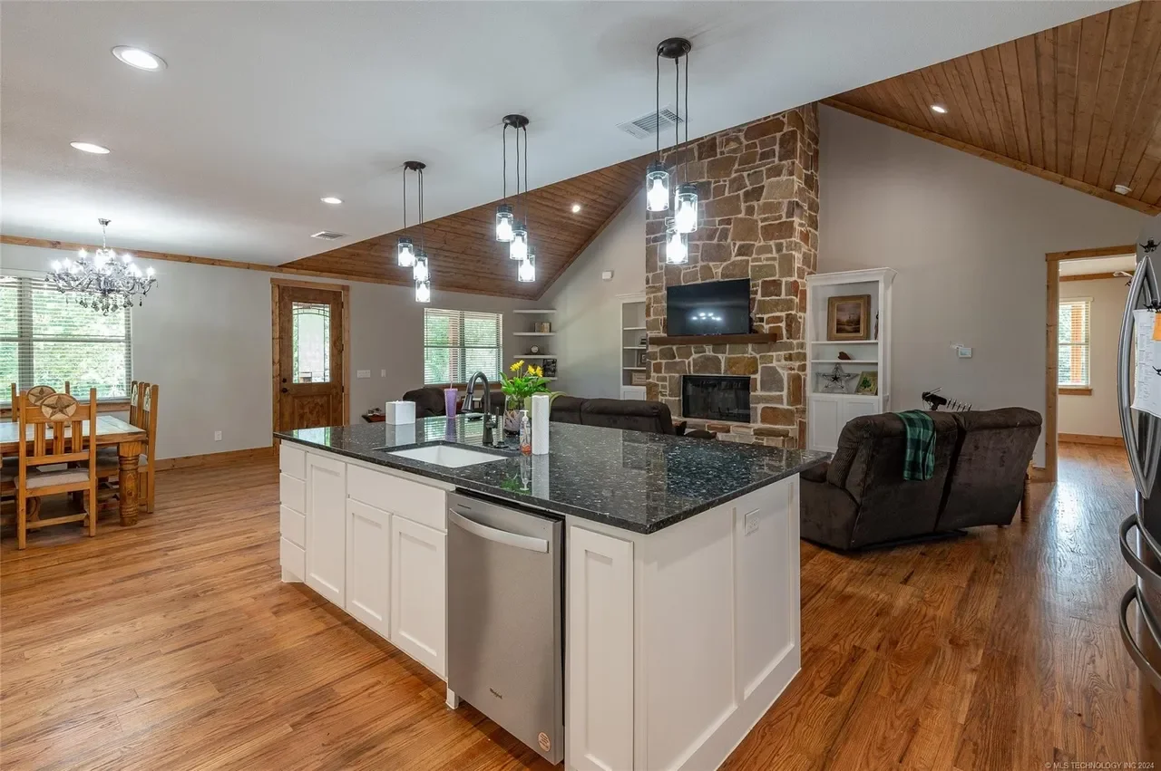 Built in 2023, this custom home has 3 bedrooms and 3.5 baths. Notable details of this home include vaulted wood ceiling in the living area, stone fireplace, large central kitchen island, and large master bathroom. This home is detailed with country and western charm.