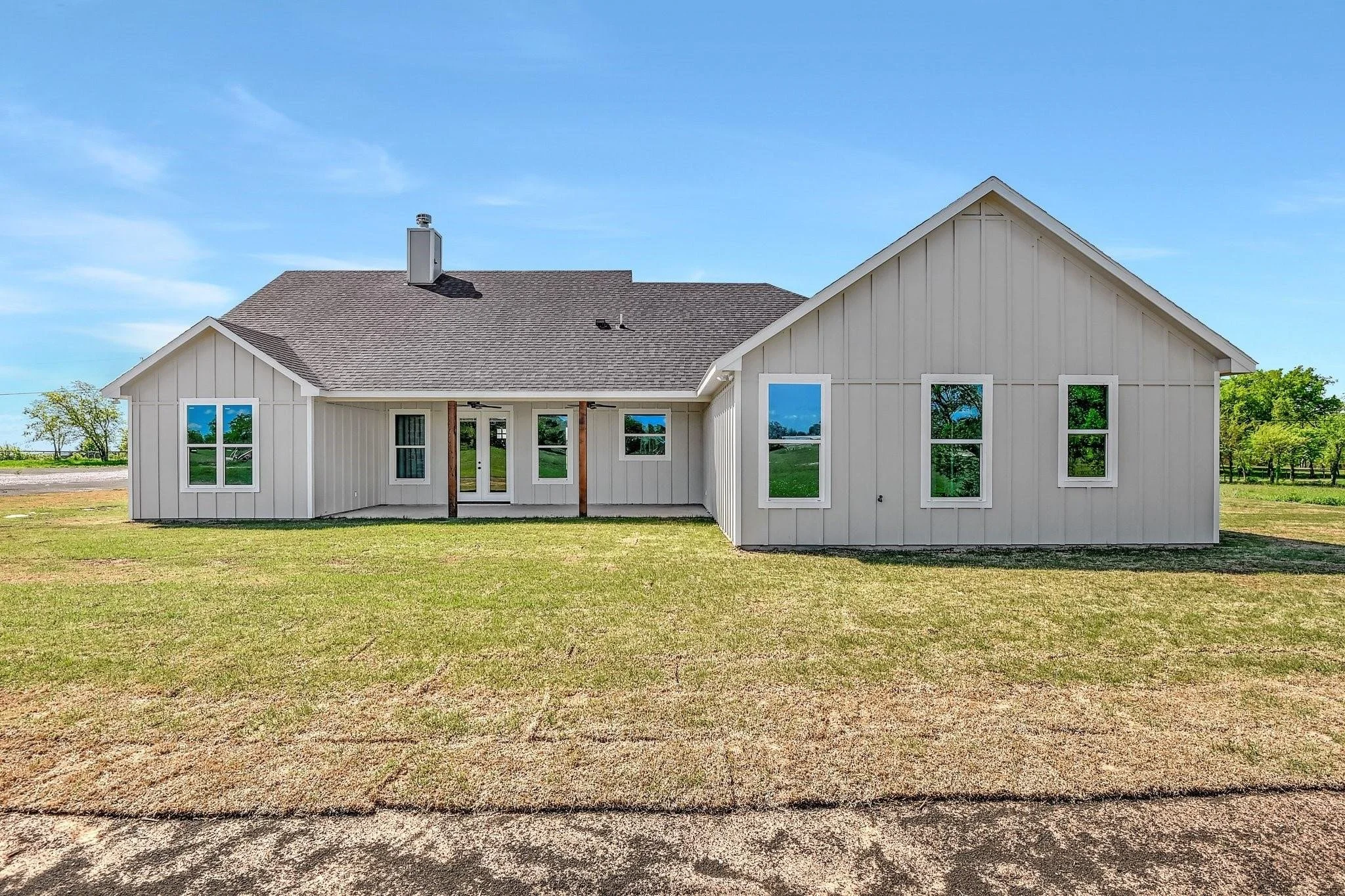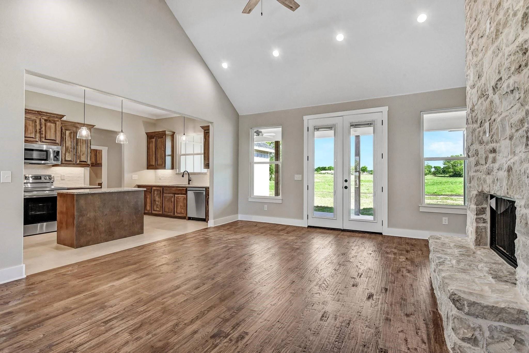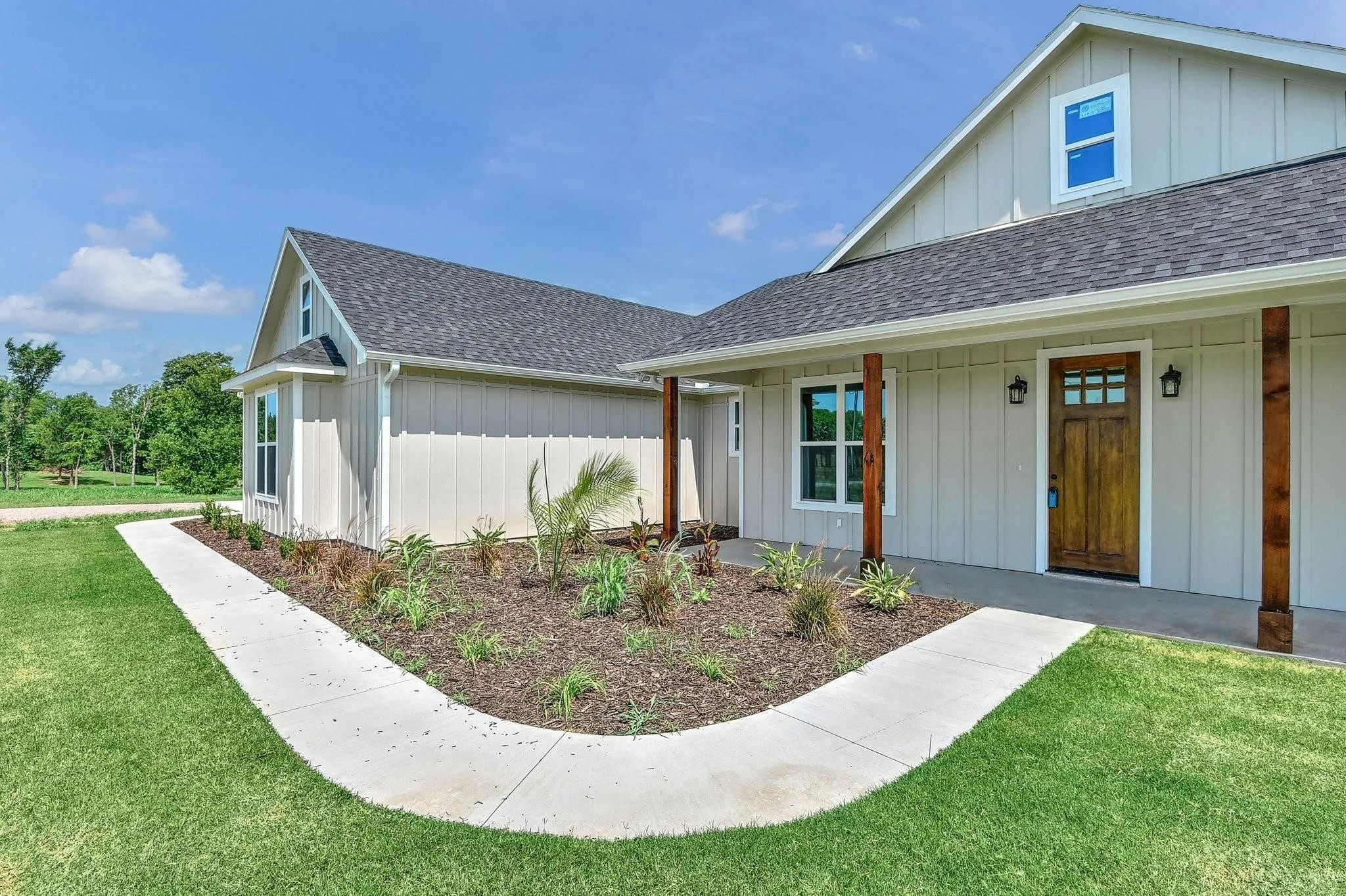 Built in 2023 on 2.101 acres. This beautiful home has a 3 car garage that opens to a hall leading to a half bath, utility room, and the master suite. This home has a open concept living area that opens to the dining room and kitchen. The living room has a vaulted ceiling with beam, stone fireplace, real wood floors & a wall of widows that look out onto the large covered patio. The kitchen has cabinet under lighting, granite, island, stainless appliances, & a walk in pantry. The spacious master has an en suite with sperate vanities, free standing tub, separate shower & extra large walk in closet that opens to the utility room. The utility room has granite countertops, sink, & built in cabinets. The 2 split bedrooms each have walk in closet & share a full bath with granite, double sinks, and a tub shower combo. The 28X9 covered porch has ceiling fans and is perfect for entertaining or just relaxing.