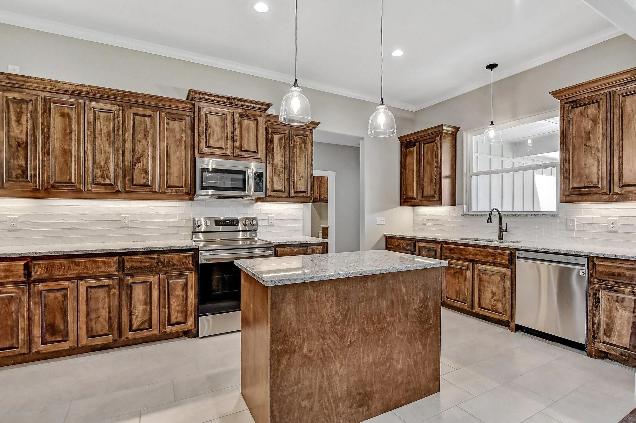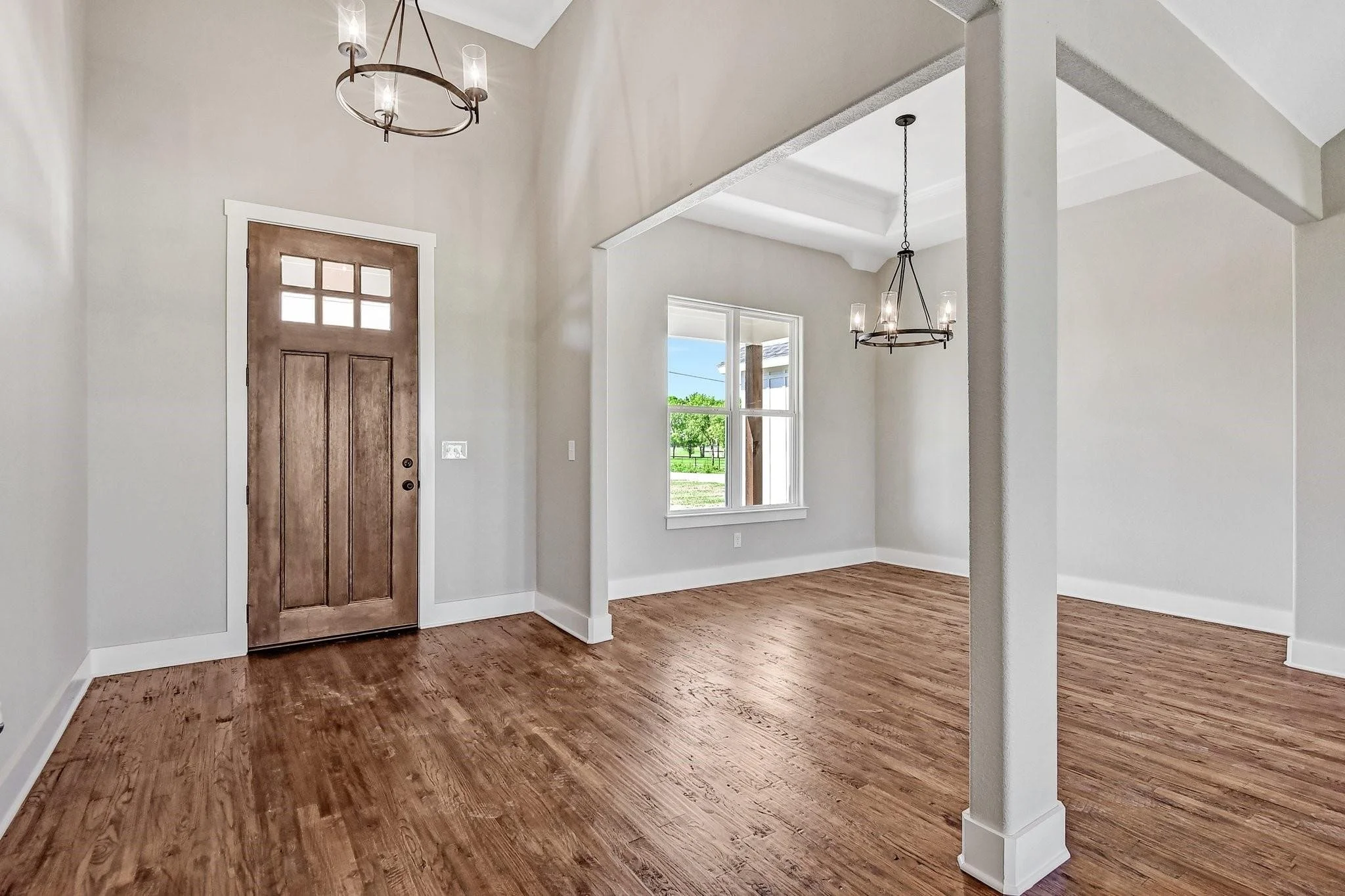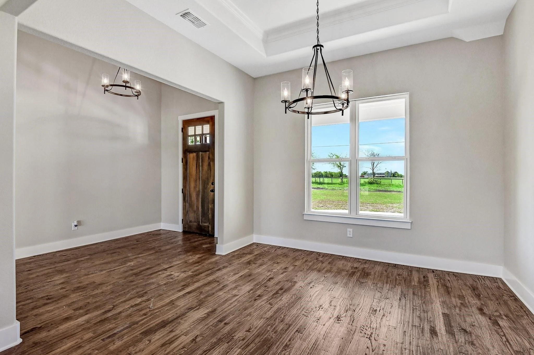 Built in 2023 on 2.101 acres. This beautiful home has a 3 car garage that opens to a hall leading to a half bath, utility room, and the master suite. This home has a open concept living area that opens to the dining room and kitchen. The living room has a vaulted ceiling with beam, stone fireplace, real wood floors & a wall of widows that look out onto the large covered patio. The kitchen has cabinet under lighting, granite, island, stainless appliances, & a walk in pantry. The spacious master has an en suite with sperate vanities, free standing tub, separate shower & extra large walk in closet that opens to the utility room. The utility room has granite countertops, sink, & built in cabinets. The 2 split bedrooms each have walk in closet & share a full bath with granite, double sinks, and a tub shower combo. The 28X9 covered porch has ceiling fans and is perfect for entertaining or just relaxing.